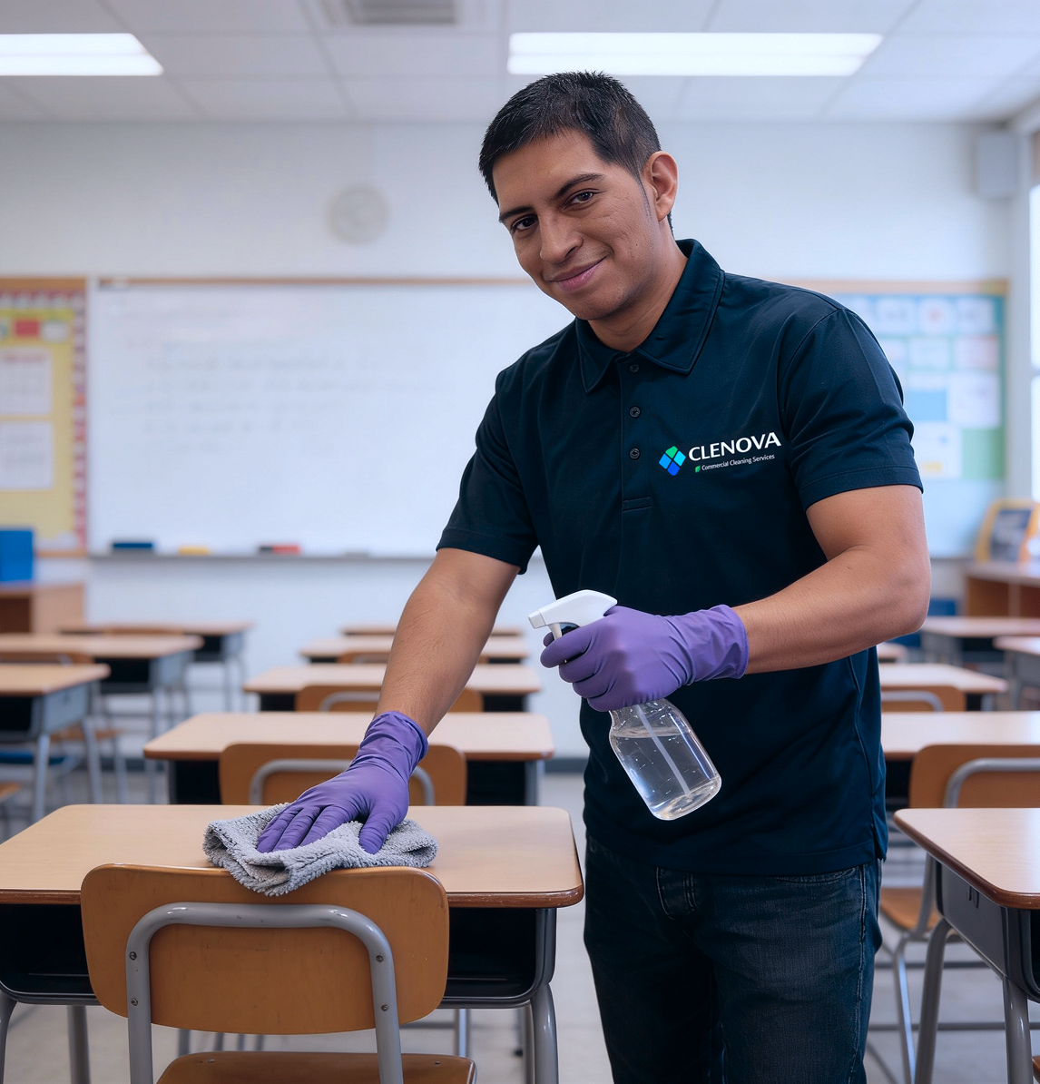 Schools must comply to health and safety rules; Commercial cleaning teams assist assure compliance.